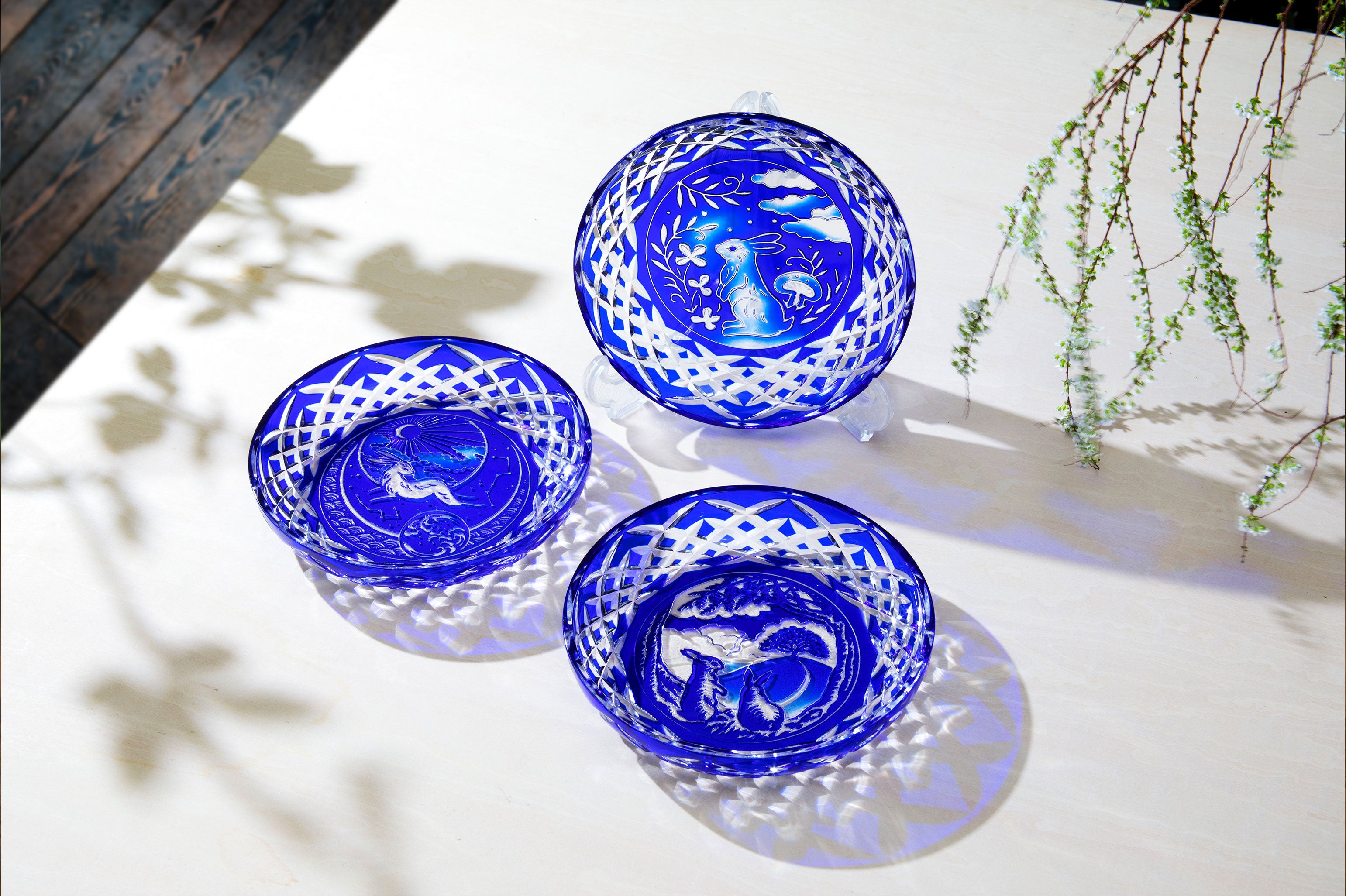 もともとは新しい年神様へのお供え物である「御年玉」を、正月の年始挨拶で訪問する際にお互いの家同士で贈り合う風習が始まりでした。イヤーズプレートとは、毎年、限定生産される絵皿のこと。結婚や子供の誕生など人生の大きなイベントの記念に購入される方も数多くいらっしゃいますが、通常は陶器製が多い中、江戸切子のプレートは大変珍しいものとなっています。