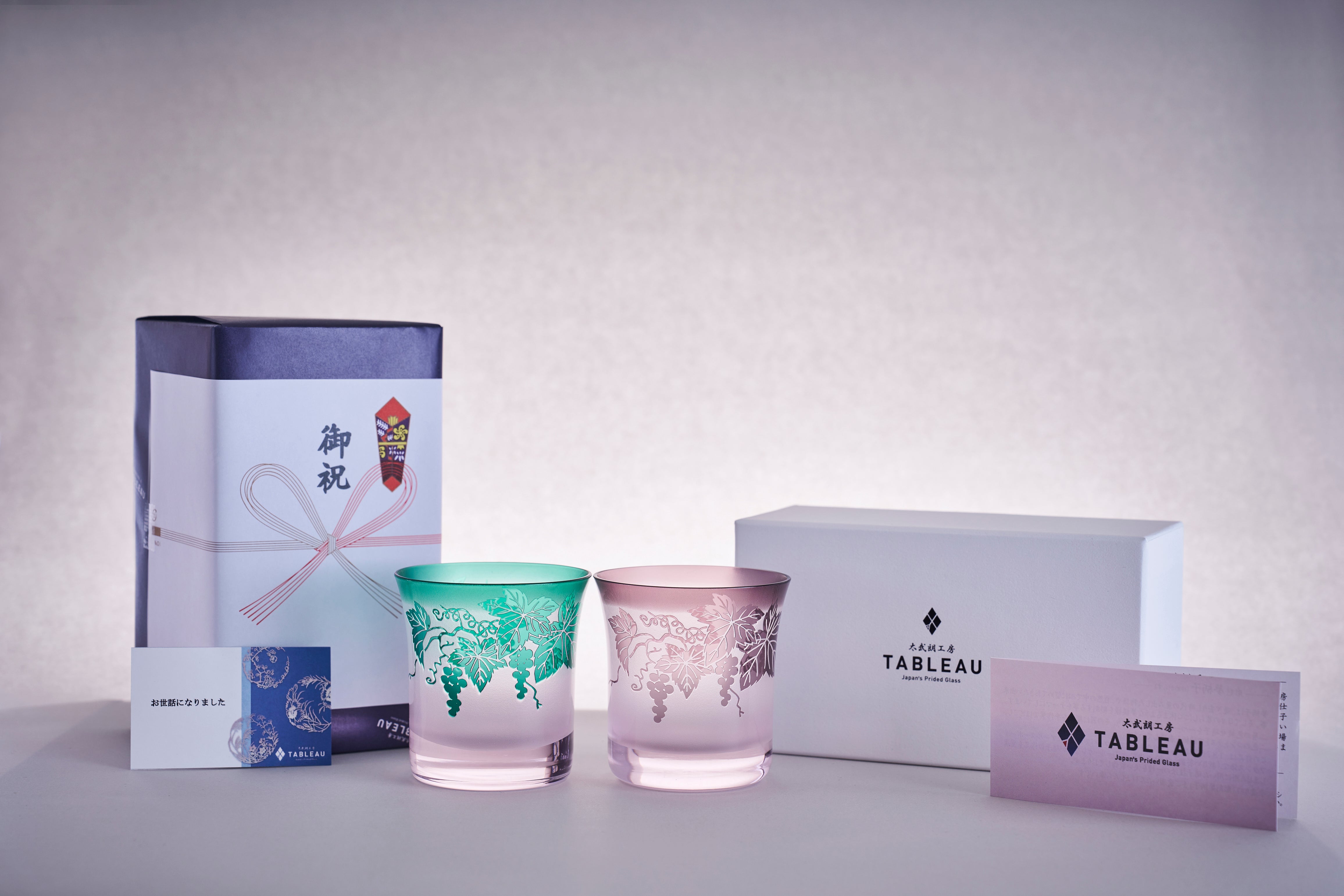 新しい春を迎える方におすすめなのが「ぶどう紋」「鉄線紋」「桜」の紋様が刻まれたグラス。紋様それぞれに意味があるため、贈る方からの特別なメッセージにもなります。「ぶどう紋」は豊穣や子孫繁栄、「鉄線紋」は強い結びつきや高潔という意味が込められ、「桜」は五穀豊穣を祈念する縁起の良い紋様として広く親しまれています。新生活をスタートする大切な方へ、応援と祝福の気持ちを贈ってみてはいかがでしょうか。