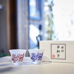 彫刻 夢柄子 干支「寅」 ぐい呑ペア 彫刻 夢柄子 干支「寅」 ぐい呑ペア