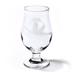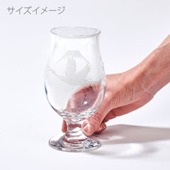 透明のガラスに花切子の技法で縁起の良い富士と鶴をカットしました。