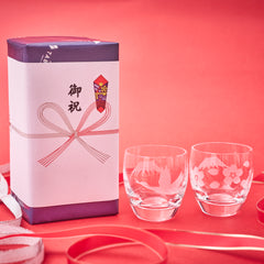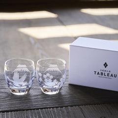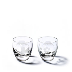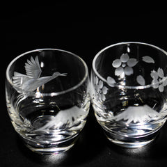 透明のガラスに花切子の技法で縁起の良い富士と鶴、富士と桜をカットしました。