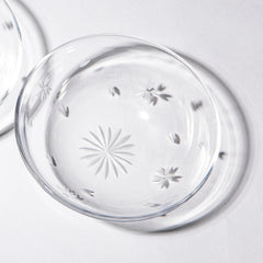透明のガラスに花切子の技法で縁起の良い桜をカットしました。