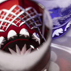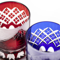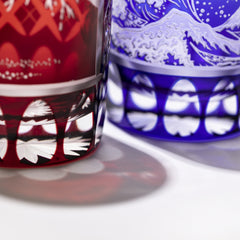 赤富士・波富士に矢来紋 オールドグラスペア 赤・ルリ