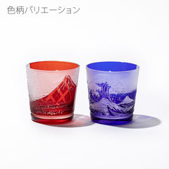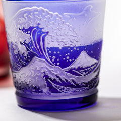 葛飾北斎による富嶽三十六景の代表作「神奈川沖波裏」をモチーフに、江戸切子の代表的な紋様「矢来」を施した 大変縁起の良いこだわりの逸品です。
