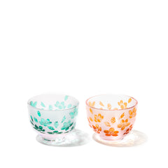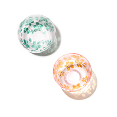 二層の色被せガラスを一つ一つ手吹きにて作り、その器に彫刻を手作業で施し、二色のコントラストで図柄を表現しています。