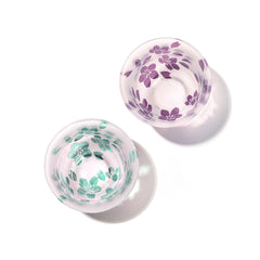 二層の色被せガラスを一つ一つ手吹きにて作り、その器に彫刻を手作業で施し、二色のコントラストで図柄を表現しています。