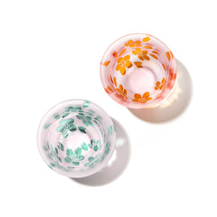二層の色被せガラスを一つ一つ手吹きにて作り、その器に彫刻を手作業で施し、二色のコントラストで図柄を表現しています。