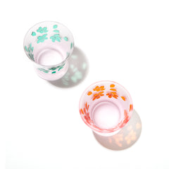 二層の色被せガラスを一つ一つ手吹きにて作り、その器に彫刻を手作業で施し、二色のコントラストで図柄を表現しています。