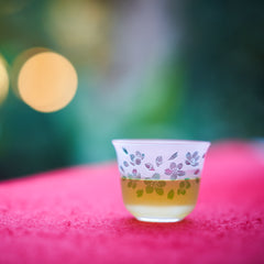 二層の色被せガラスを一つ一つ手吹きにて作り、その器に彫刻を手作業で施し、二色のコントラストで図柄を表現しています。