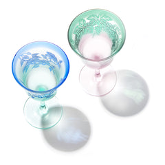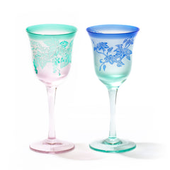 ぶどう紋・鉄線紋 ワイングラスペア ピンク/グリーン・グリーン/ブルー