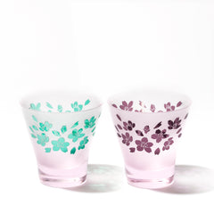 桜紋 高台オールドグラスペア ピンク/グリーン・ピンク/パープル
