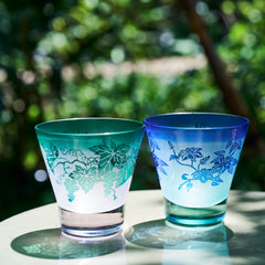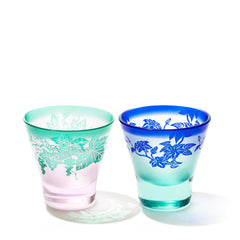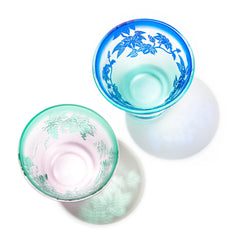 ぶどう紋・鉄線紋 高台オールドグラスペア ピンク/グリーン・グリーン/ブルー