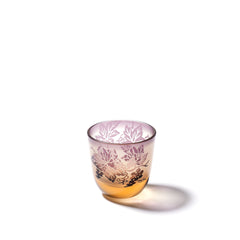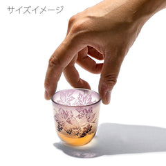 二層の色被せガラスを一つ一つ手吹きにて作り、その器に彫刻を手作業で施し、二色のコントラストで図柄を表現しています。