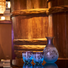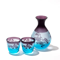 二層の色被せガラスを一つ一つ手吹きにて作り、その器に彫刻を手作業で施し、二色のコントラストで図柄を表現しています。