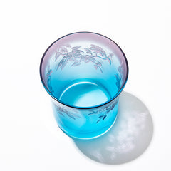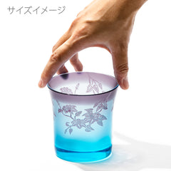 二層の色被せガラスを一つ一つ手吹きにて作り、その器に彫刻を手作業で施し、二色のコントラストで図柄を表現しています。