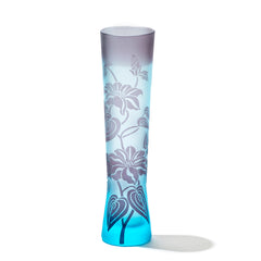 二層の色被せガラスを一つ一つ手吹きにて作り、その器に彫刻を手作業で施し、二色のコントラストで図柄を表現しています。