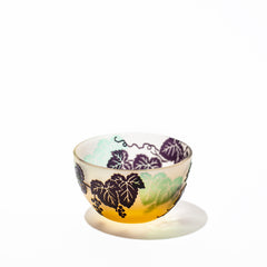 幻夢柄子は、三層の色被せガラスを一つ一つ手吹きにて作り、その器の内側と外側から彫刻を手作業で施しました。各層の三つの色の重なりが 奥行きのある表情を 生み出しています。
