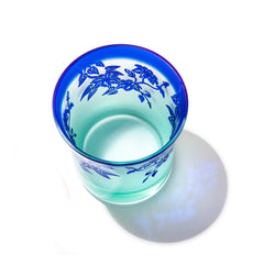 二層の色被せガラスを一つ一つ手吹きにて作り、その器に彫刻を手作業で施し、二色のコントラストで図柄を表現しています。