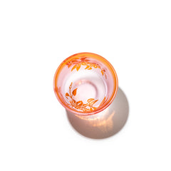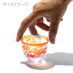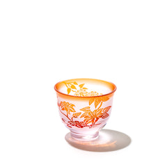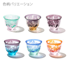 二層の色被せガラスを一つ一つ手吹きにて作り、その器に彫刻を手作業で施し、二色のコントラストで図柄を表現しています。