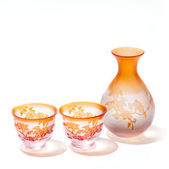 鉄線紋 酒器三点揃 ピンク/レッド ぐい呑70ml 徳利210ml