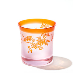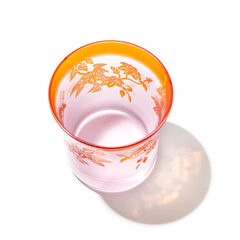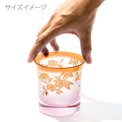 二層の色被せガラスを一つ一つ手吹きにて作り、その器に彫刻を手作業で施し、二色のコントラストで図柄を表現しています。