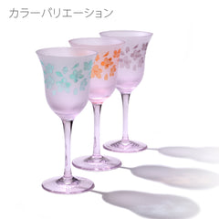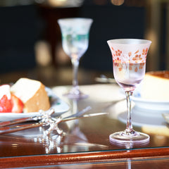 二層の色被せガラスを一つ一つ手吹きにて作り、その器に彫刻を手作業で施し、二色のコントラストで図柄を表現しています。
