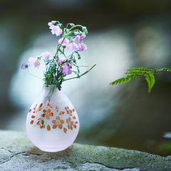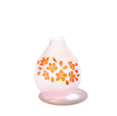 二層の色被せガラスを一つ一つ手吹きにて作り、その器に彫刻を手作業で施し、二色のコントラストで図柄を表現しています。