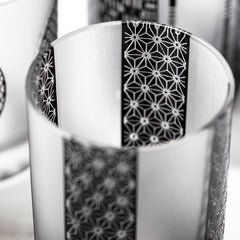麻の葉を幾何学的に意匠化した小紋。 麻には魔除けの力があるとされ 産着等にも多く使われました。