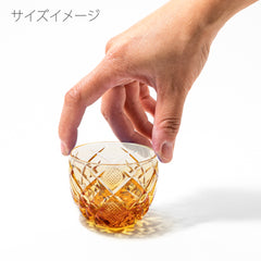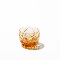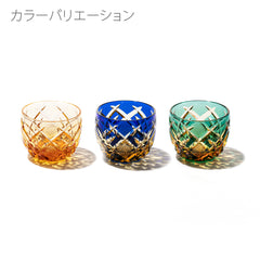 江戸切子の代表的な紋様「矢来魚子(やらいななこ)」紋。竹や丸太を互い違いに組んだ形状の事を指し、 「物事の基礎を作る」「基盤を固める」とされる矢来と 魚のうろこを意味し、 数の多いという意味合いから 多産・豊かさを表す魚子を組み合わせた 大変縁起の良い伝統紋様の一つです。