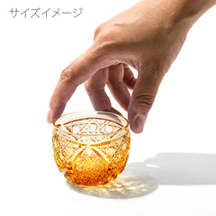 菊繋ぎに籠目紋 ぐい呑 琥珀