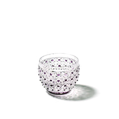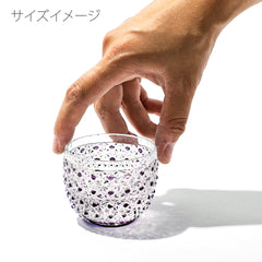 江戸切子の代表的な紋様「菊籠目(かごめ)」紋。 籠の目を図案化し、古来より 「魔除け」の象徴と伝えられる「籠目紋」と不老長寿を表す「菊花紋」が連なる大変縁起の良い柄です。