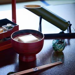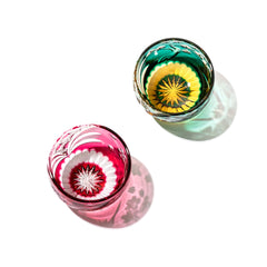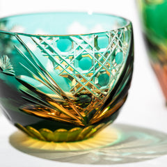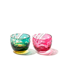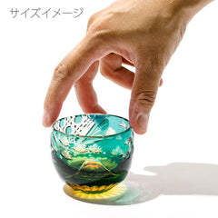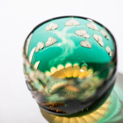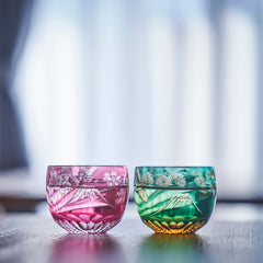 純国産クリスタルガラスを使用し、「富士山と松」「富士山と桜」を切子で表現しました。