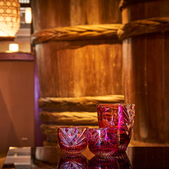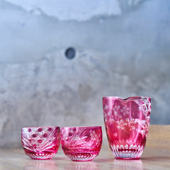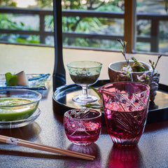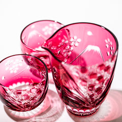 純国産クリスタルガラスを使用し、「富士山と桜」を切子で表現しました。