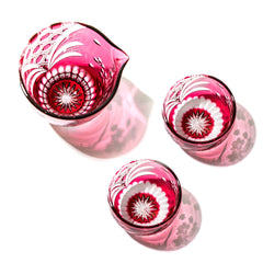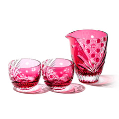 富士桜に籠目紋 酒器三点揃 金赤