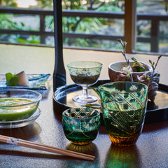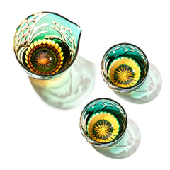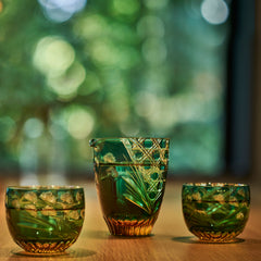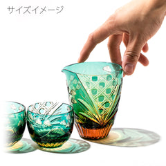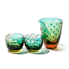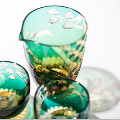 富士松に籠目紋 酒器三点揃 琥珀緑