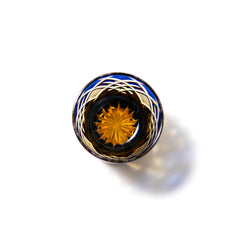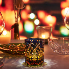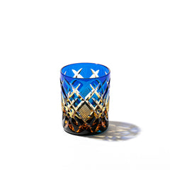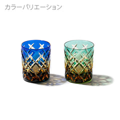 江戸切子の代表的な紋様「矢来魚子(やらいななこ)」紋。竹や丸太を互い違いに組んだ形状の事を指し、 「物事の基礎を作る」「基盤を固める」とされる矢来と 魚のうろこを意味し、 数の多いという意味合いから 多産・豊かさを表す魚子を組み合わせた 大変縁起の良い伝統紋様の一つです。