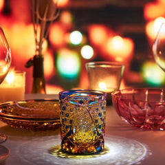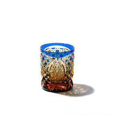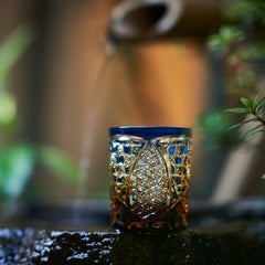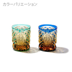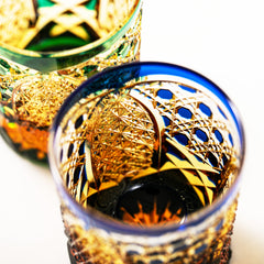 籠の目を図案化し、古来より魔除けとされた「籠目紋」、 不老長寿を表す菊花が連なり咲き誇る様を表す「菊繋ぎ紋」。 二種類の紋様を交互に配した縁起の良い江戸切子です。