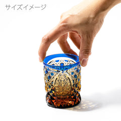 菊繋ぎに籠目紋 酒グラス 琥珀ルリ