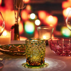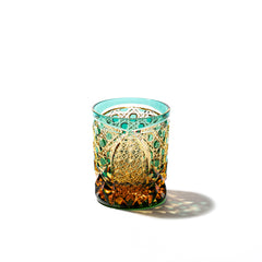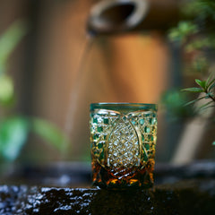 菊繋ぎに籠目紋 酒グラス 琥珀緑