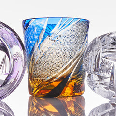 伝統紋様の「菊繋ぎ」を渦巻くように配した曲線美のカットにより更なる輝きを味わえる逸品です。