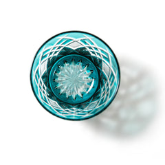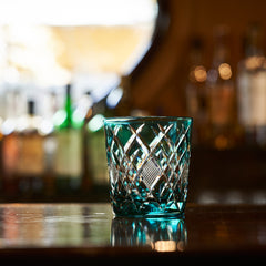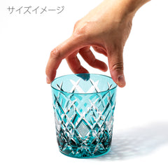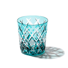 江戸切子の代表的な紋様「矢来魚子(やらいななこ)」紋。竹や丸太を互い違いに組んだ形状の事を指し、 「物事の基礎を作る」「基盤を固める」とされる矢来と 魚のうろこを意味し、 数の多いという意味合いから 多産・豊かさを表す魚子を組み合わせた 大変縁起の良い伝統紋様の一つです。