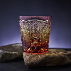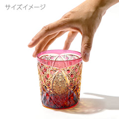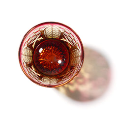 菊繋ぎに籠目紋 オールドグラス 琥珀金赤