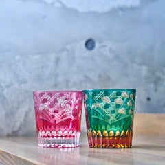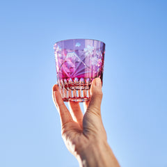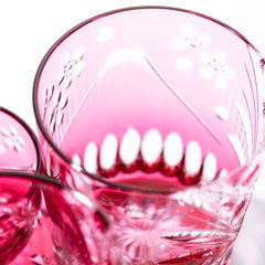純国産クリスタルガラスを使用し、「富士山と桜」を切子で表現しました。