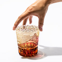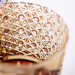 富嶽三十六景「凱風快晴」に菊籠目紋 オールドグラス 琥珀金赤
