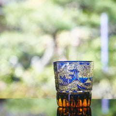 富嶽三十六景「神奈川沖波裏」に菊籠目紋 オールドグラス 琥珀ルリ