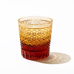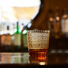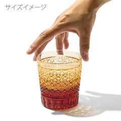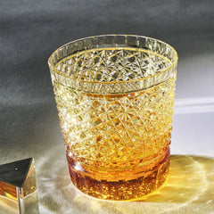 江戸切子の代表的な紋様「菊籠目(かごめ)」紋。 籠の目を図案化し、古来より 「魔除け」の象徴と伝えられる「籠目紋」と不老長寿を表す「菊花紋」が連なる大変縁起の良い柄です。