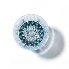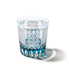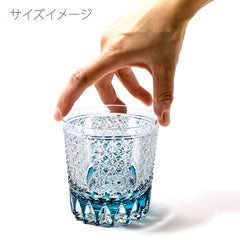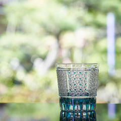 魔除けの意味を持つ籠目と不老長寿を表す菊を重ねた「菊籠目紋」、 不老長寿を表す菊花が連なり咲き誇る様を表す「菊繋ぎ紋」。 二種類の紋様を組み併せた、華やかで縁起の良い江戸切子です。
