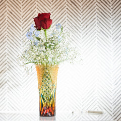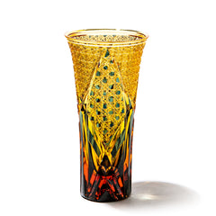 籠の目を図案化し、古来より魔除けとされた「籠目紋」、 不老長寿を表す菊花が連なり咲き誇る様を表す「菊繋ぎ紋」。 二種類の紋様を交互に配した縁起の良い江戸切子です。
