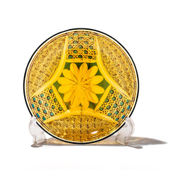 菊繋ぎに籠目紋 平皿 琥珀ルリ