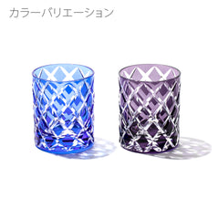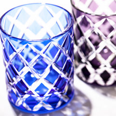 江戸切子「粋」・「雅」は 江戸の心意気を表現した「粋」の晴れやかな青、江戸の美意識を表現した「雅」の落ち着いた紫を取り入れたシリーズです。